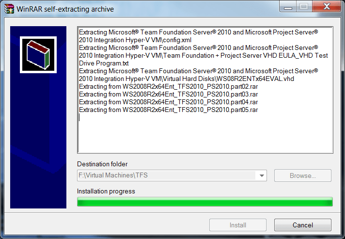 The WinRAR progress bar is wrong. It’s status doesn’t make any sense if you have a multi-segment RAR file. It often only shows status of the first segment. Here’s an example of a file being reconstructed from 10 segments.